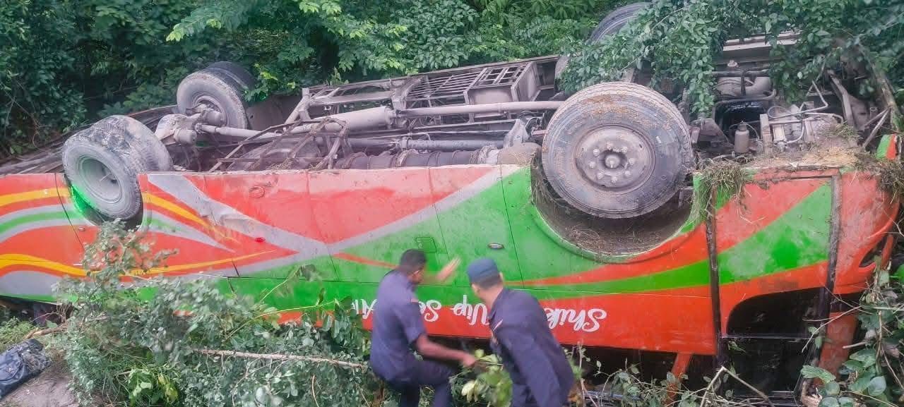 ना ८ ख ५७०३ नम्बरको बस शनिबार बिहान करिब ५:३० बजे सडक छेउमा पल्टिँदा दुर्घटना भएको हो। प्रहरीका अनुसार दुर्घटनामा परि दुई जना गम्भीर घाइते भएका छन् ।