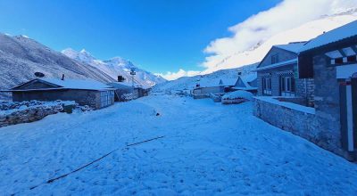 गत आइतबार बिहानदेखि सुरु भएको भारी वर्षापछि सोलुखुम्बुको खुम्बु पासाङल्हामु गाउँपालिकाको नाम्चेभन्दा माथिल्लो क्षेत्रमा हिउँ परेको छ । लगातारको वर्षा र हिमपातले दिङ्बोचे, लाबुचे, फेरेचे र गोक्यो क्षेत्र सेताम्य बनेको स्थानीय पासाङ शेर्पाले जानकारी दिए ।