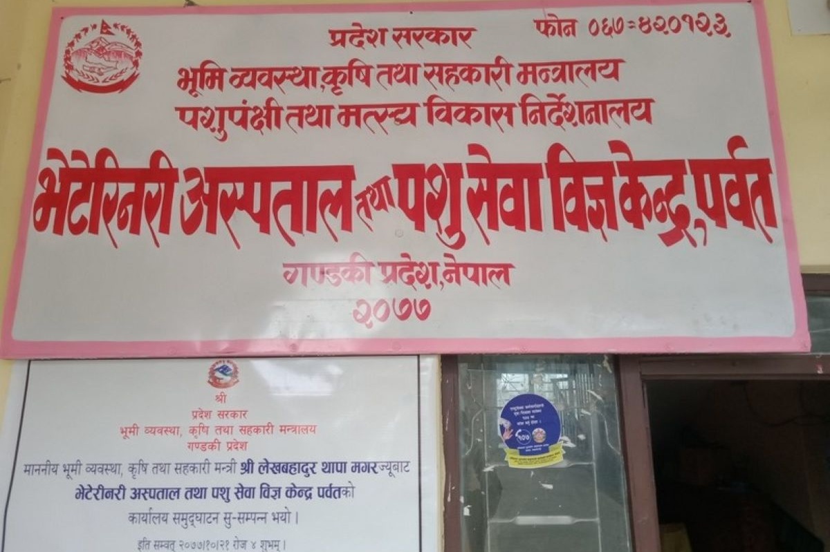 पर्वत । पर्वत जिल्लाका पशुपालक किसानलाई आत्मनिर्भर र व्यावसायिक बनाउनका लागि प्रोत्साहन गर्न अनुदान वितरण गरिने भएको छ । भेटेरिनरी अस्पताल तथा पशु सेवा विज्ञ केन्द्रले पशु विकास तथा दूध उत्पादनमा किसानलाई प्रोत्साहन गर्न ८० लाख अनुदान वितरण गर्ने भएको छ ।