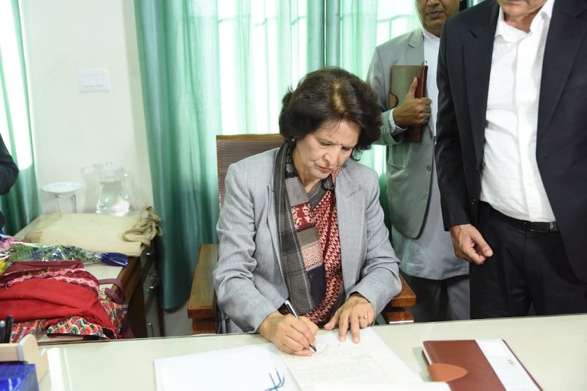 काठमाडौँ । नवनियुक्त स्वास्थ्य मन्त्री डा. सुधा शर्माले पदभार ग्रहण गरेकी छिन् । मन्त्री शर्माले राष्ट्रपति कार्यालयमा शपथ लिएलगत्तै स्वास्थ्य मन्त्रालयमा पुगेर पदभार ग्रहण गरेकी हुन् ।