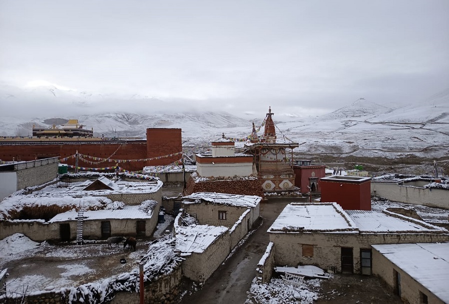 उपल्लो मुस्ताङका विभिन्न स्थानमा बिहीबार राति हिमपात भएको छ । एक्याप लोमान्थाङका कार्यालय प्रमुख उमेश पौडेलका अनुसार अहलिे सामान्य हिमपात भइरहेको छ । मुक्तिनाथ क्षेत्रमा अहिले वर्षा भइरहेको मुक्तिनाथ विकास समितिका कर्मचारी रबिन सुवेदीले जानकारी दिए ।
