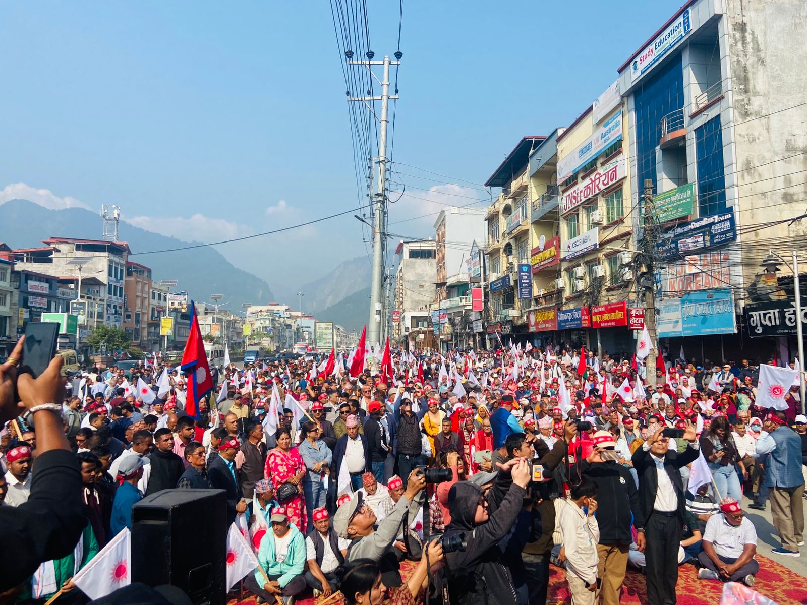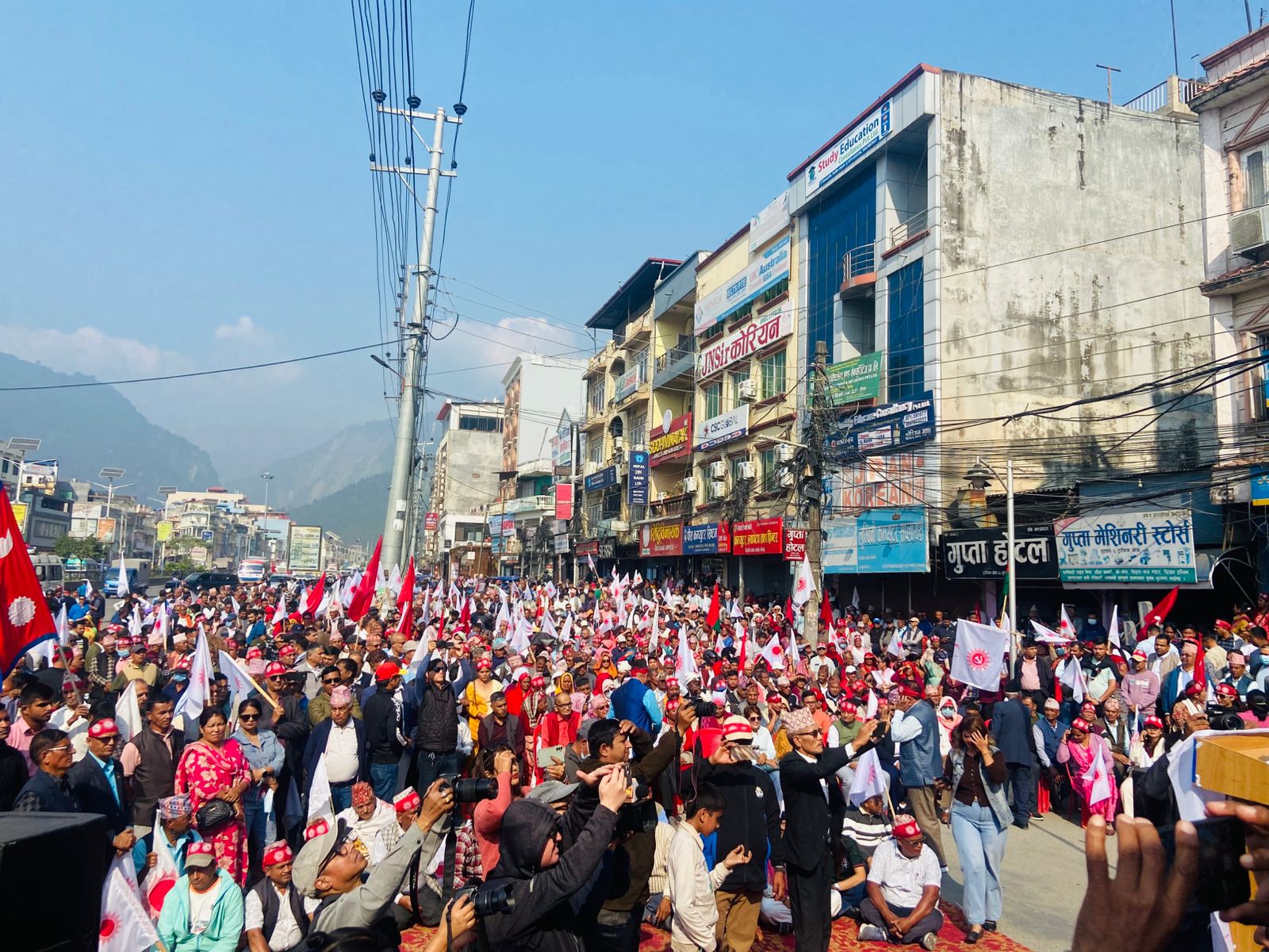 बुटवल । नेकपा एमालेले देशभर ७७ वटै जिल्लामा घोषणा गरेको जनप्रदर्शन कार्यक्रमअनुसार शनिबार रुपन्देहीमा पनि शक्ति प्रदर्शन गरेको छ । एमाले रुपन्देहीले बुटवलमा र्याली र जनसभा मार्फत लोकतन्त्रको रक्षा, संविधान कार्यान्वयन, संसद पुनर्स्थापना, सर्वपक्षीय सरकार गठन तथा जेन-जी पुस्ताको आन्दोलनका माग सम्बोधनका एजेन्डा प्रस्तुत गर्दै प्रदर्शन गरेको हो ।