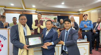 कर दिवसको अवसरमा आयोजित कार्यक्रमका बीच बाँकेका प्रमुख जिल्ला अधिकारी दिलकुमार तामाङ र आन्तरिक राजश्व कार्यालय नेपालगन्जका प्रमुख पूर्णप्रसाद न्यौपानेले अस्पतालका संस्थापक संचालक डा विनोन कुमार थापालाई दोसल्ला ओढाएर सम्मान गरे।