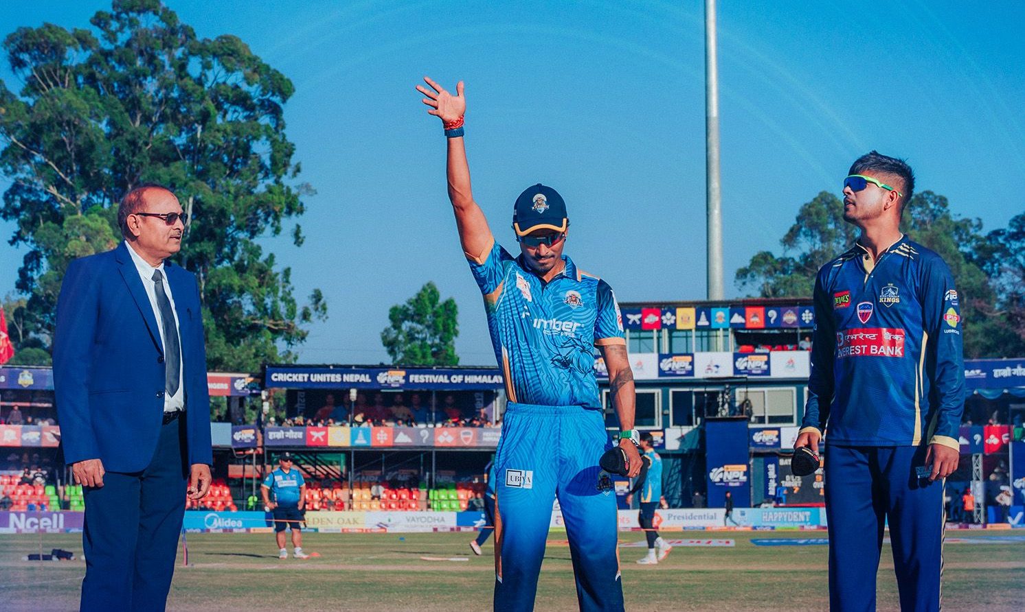 काठमाडौं । नेपाल प्रिमियर लिग (एनपीएल) को दोस्रो संस्करणमा कर्णाली याक्सले विराटनगर किंग्सविरुद्ध पहिला ब्याटिङ गर्ने भएको छ । कीर्तिपुरस्थित त्रिवि क्रिकेट मैदानमा शुक्रबार टस जितेका कर्णालीका कप्तान सोमपाल कामीले विराटनगरका कप्तान सन्दीप लामिछानेलाई फिल्डिङको लागि आमन्त्रण गरे ।