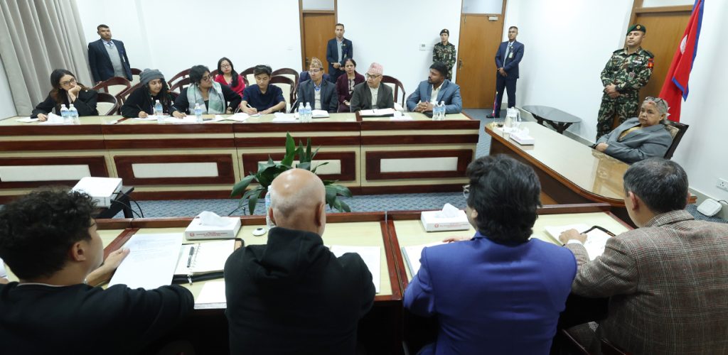 काठमाडौं । प्रधानमन्त्री सुशीला कार्कीले जेनजी आन्दोलनका अगुवा प्रतिनिधिहरूसँग छलफल गरेकी छिन्।