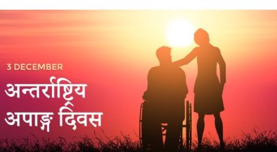 ‘अपाङ्गता समावेशी समाजको प्रवद्र्धनः सामाजिक उन्नतिको संवद्र्धन’ नाराका साथ यस वर्ष अपाङ्गता भएका व्यक्तिको ३४औँ अन्तरराष्ट्रिय दिवस मनाइएको छ । अपाङ्गता भएका नागरिकको हक अधिकार प्रवद्र्धनका लागि विश्वभर संयुक्त राष्ट्रसङ्घको पहलमा सन् १९९२ देखि हरेक वर्ष डिसेम्बर ३ तारिखका दिन अपाङ्गता भएका व्यक्तिको अन्तरराष्ट्रिय दिवस मनाउन थालिएको हो । दिवसले अपाङ्गता भएका व्यक्तिको अधिकार, समानता, समावेशिता र सम्मानलाई सुनिश्चित गर्ने साझा संकल्पलाई पुनः स्मरण गराएको छ ।
