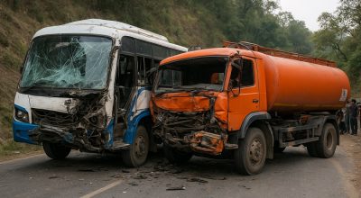 दुर्घटनापछि सडकमा यातायात पूर्णरुपमा अवरुद्ध भएको थियो ।