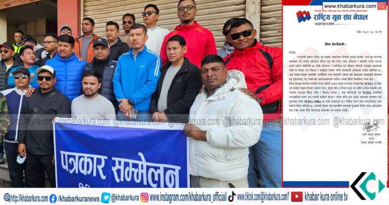 बुटवल । राष्ट्रिय युवा संघ नेपाल रुपन्देही जिल्ला कमिटीले एनसेल कम्पनीको लापरबाही र नियमनविहीन गतिविधिप्रति कडा आपत्ति जनाउँदै बुटवलस्थित एनसेल कार्यालयमा तालाबन्दी गरेको छ । सोमबार जारी गरिएको प्रेस विज्ञप्तिमा संघले एनसेलका गतिविधिले नागरिकको गोपनीयता, सुरक्षा र उपभोक्ता अधिकार उल्लंघन भएको आरोप लगाएको छ । संघका अध्यक्ष कृष्णबहादुर कुमालद्वारा जारी विज्ञप्तिमा भनिएको छ कि “न्यायप्रेमी … Continue reading एनसेलको लापरबाहीविरुद्ध राष्ट्रिय युवा संघको आक्रोश, बुटवल अफिसमा तालाबन्दी