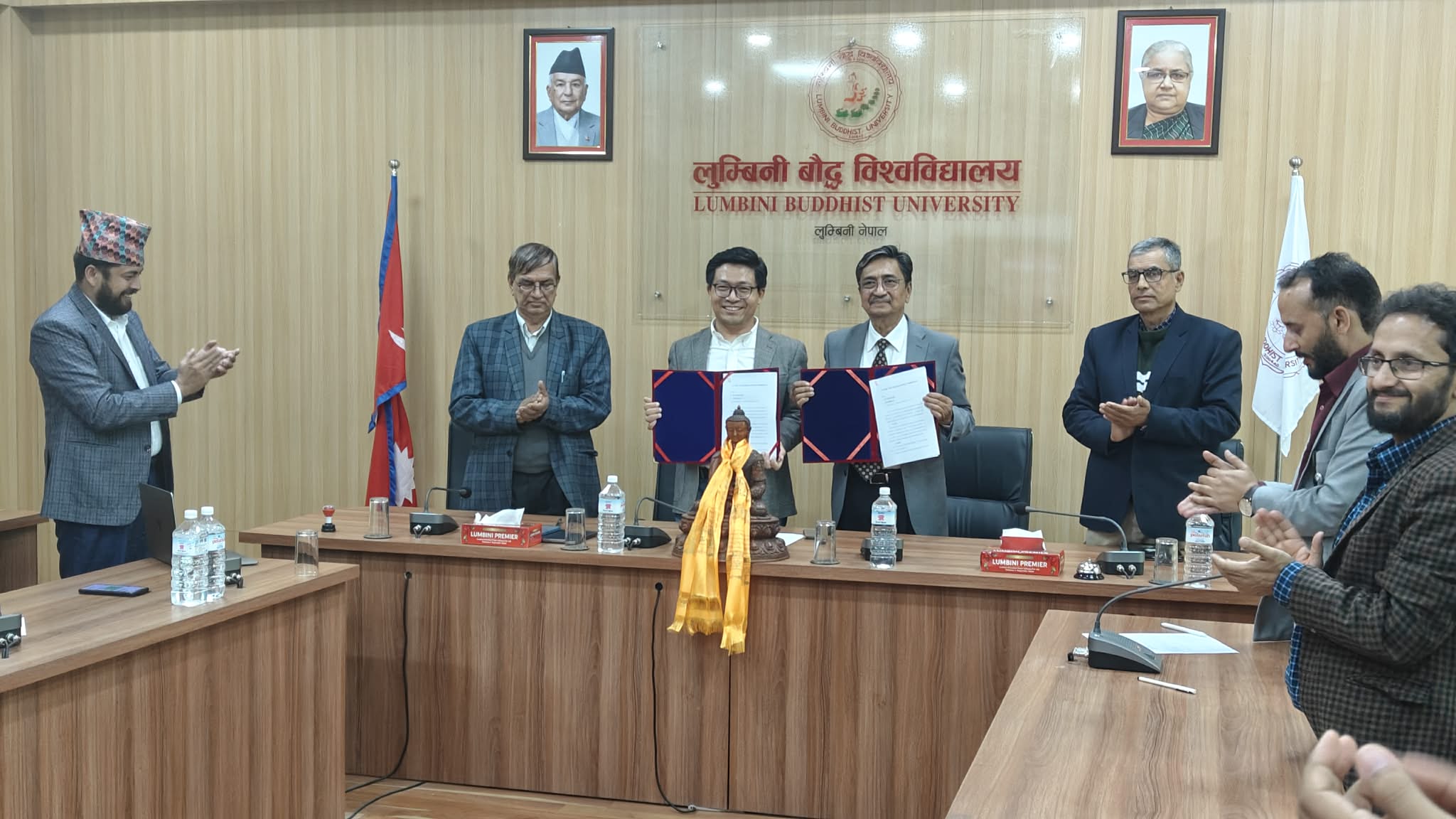 हिमालयन रिसर्च इन्ष्टिच्युट स्थापना गर्ने सम्बन्धी त्रिपक्षीय सहकार्य सम्झौतामा २०८२ मंसिर २५ गते लुम्बिनी बौद्ध विश्वविद्यालयका उपकुलपति प्रा।डा। सुवर्णलाल बज्राचार्य र मकाउ इन्टरनेशनल थिङ्कट्याङ्का अध्यक्ष प्राध्यापक स्वी हाओले हस्ताक्षर गरे ।