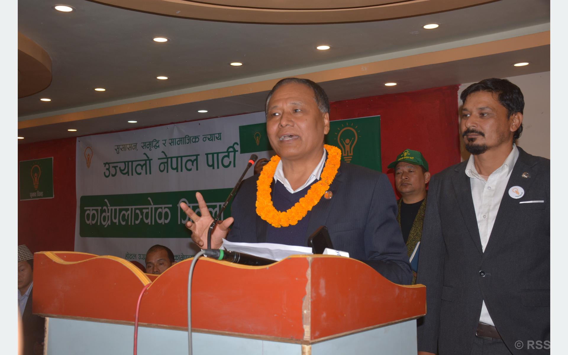 धुलिखेल । ऊर्जा, जलस्रोत तथा सिँचाइमन्त्री कुलमान घिसिङले नयाँ शक्तिहरू अबको निर्वाचनपछि बन्ने सरकारको नेतृत्व गर्नेगरी अगाडि बढ्नुपर्ने बताएका छन् । काभ्रेपलाञ्चोकको बनेपामा आज आयोजित उज्यालो नेपाल पार्टीको जिल्ला भेलामा उनले वैकल्पिक शक्ति बन्ने भनेर आएका सबै मिलेर अगाडि बढ्नुपर्ने र त्यसको अगुवाई उज्यालो नेपाल पार्टीले गर्नुपर्ने बताए ।