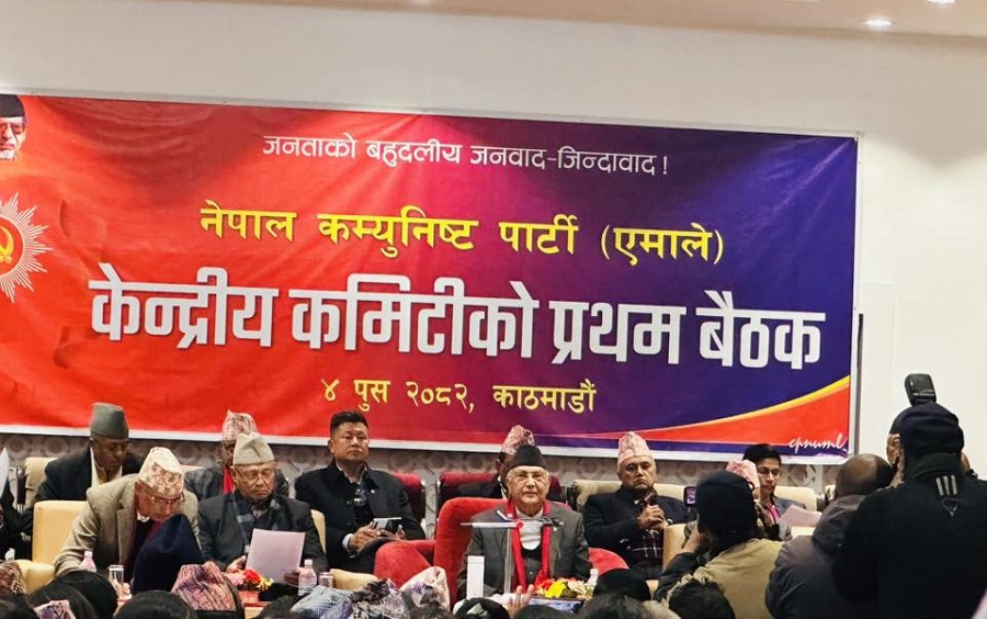 काठमाडौँ । नेकपा (एमाले)को ११ औँ महाधिवेशन सम्पन्न भएपछि पहिलो पटक केन्द्रीय कमिटी बैठक बसेको छ । बबरमहलस्थित कार्की ब्याङ्क्वेटमा केहीबेर अघि बैठक सुरु भएको हो ।