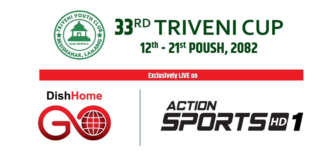 ३३औँ त्रिवेणी कप राष्ट्रव्यापी फुटबल प्रतियोगिताको प्रत्यक्ष प्रसारण डिसहोम गो र एक्सन स्पोर्टश एचडी १ मा हुने