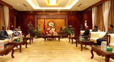 बालुवाटारमा प्रधानमन्त्री कार्कीसँग ओली, देउवा र प्रचण्डको छलफल जारी
