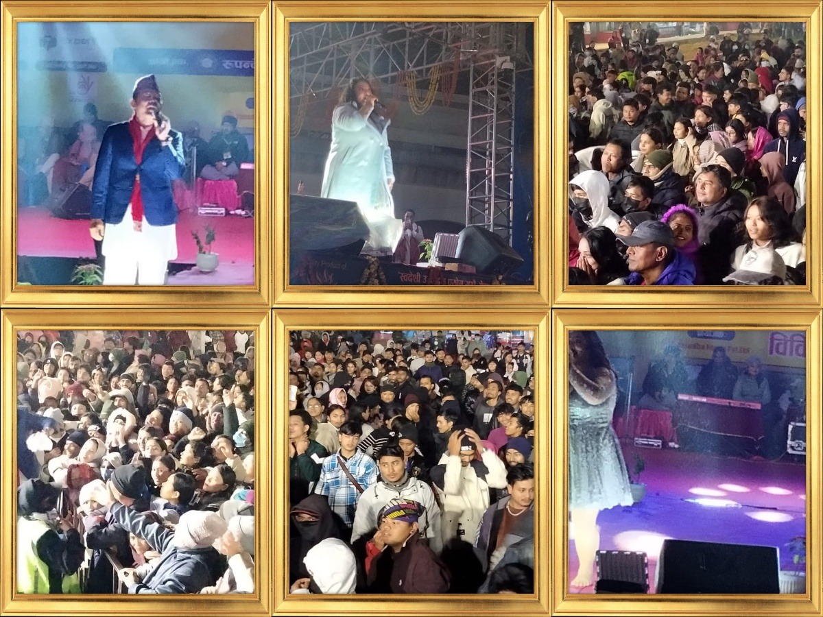 बुटवल । पुस १४ गते सोमबार राती अबेर भइसकेको थियो । बढ्दै गरेको शीतलहरले बुटवलबासी कक्रक्क परिरहेका थिए तर बुटवल मण्डपमा जारी औद्योगिक प्रदर्शनी, कृषि प्रविधि तथा पर्यटन महोत्सवमा सहभागी भएका दर्शकहरु कलाकार ज्योति मगर र बद्री पंगेनीलाई कुरिरहेका थिए ।