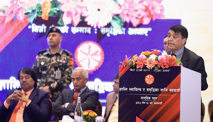 उनले नेपाल सरकार (मन्त्रिपरिषद्)बाट पारित भइसकेको निजी क्षेत्र संरक्षण एवं प्रवर्द्धन रणनीति छिटो कार्यान्वयन गर्न आग्रह गरे । उनले वर्तमान अवस्थामा यही रणनीति निर्माण र कार्यान्वयन अपरिहार्य रहेको उल्लेख गरे ।