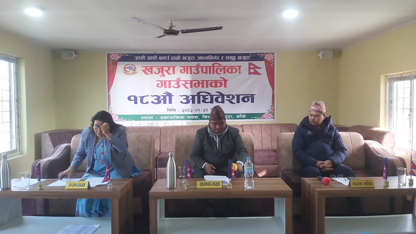 गाउँपालिकाको १८ औ गाँउसभा अधिवेशनमा आर्थिक वर्ष २०८२/०८३ को अर्धवार्षिक प्रगति प्रतिवेदन प्रस्तुत गर्दै खजुरा गाँउपालिकाकी उपाध्यक्ष मन्जु मल्ल चन्दले चालु तर्फ १९ करोड ७९ लाख ५३ हजार र पुँजीगत तर्फ १ करोड ३ लाख ४५ हजार खर्च भएको जानकारी दिइन् ।