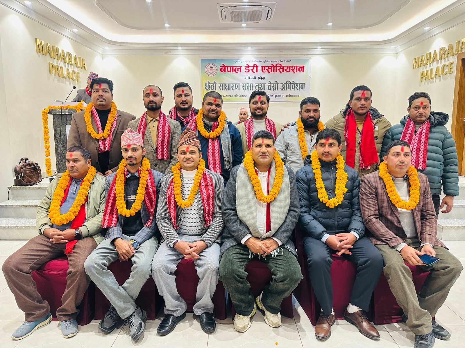 बुटवल । नेपाल डेरी एसोसिएसन लुम्बिनी प्रदेशको छैटौँ वार्षिक साधारणसभा तथा तेस्रो अधिवेशन बिहीबार बुटवलमा सम्पन्न भएको छ । अधिवेशनले थानेश्वर न्यौपानेको अध्यक्षतामा नयाँ कार्यसमिति सर्वसम्मत रूपमा चयन गरेको छ ।