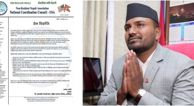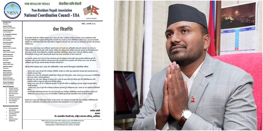 विज्ञप्तिमा भनिएको छ, ‘एनआरएनए एनसीसी युएसएले नेपाल सरकारका माननीय युवा तथा खेलकुदमन्त्री बब्लु गुप्तालाई अमेरिकामा कुनै पनि कार्यक्रमका लागि आमन्त्रण गरेको छैन । साथै, अमेरिकामा कुनै पनि युवासम्बन्धी कार्यक्रम आयोजना गरिएको छैन ।’