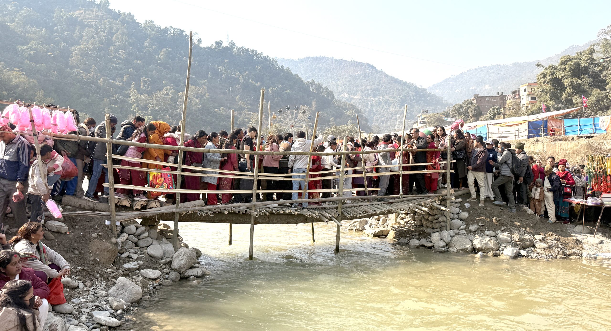मुक्तिनाथबाट बग्दै आउने कालीगण्डकी नदीमा स्याङ्जातर्फ जान तीनमुखे पुल निर्माण भएको छ । पाल्पा, गुल्मी र स्याङ्जातर्फ जाने तीनमुखे पुलमा पनि भक्तजनको बाक्लो उपस्थिति रहेको रुरु सञ्चार प्रालिका अध्यक्ष तिमिल्सेनाले बताए । “कालीगण्डकी जलविद्युत् आयोजना मिर्मिमा पानी थुनिएकाले यहाँ नदी सानो छ । स्नान गर्न र ऋषिकेशव दर्शन गर्न आउने भक्तजनलाई तीनमुखे पुलले सहज बनाएको छ”, उनले भने ।