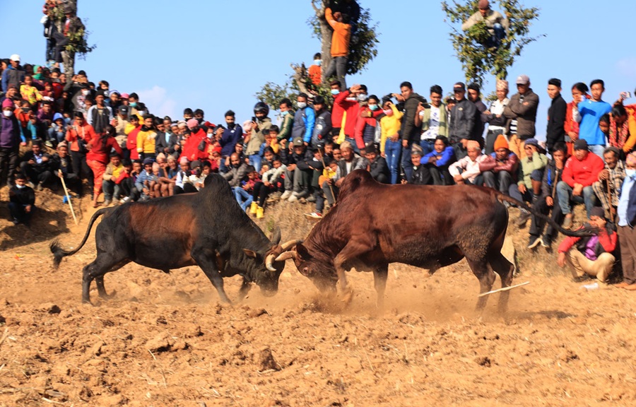 धादिङ । माघे सङ्क्रान्तीको दिन आज धादिङमा एक सय हल गोरु जुधाइएको छ । कृषि कर्मका लागि पालिएका गोरुलाई माघे सङ्क्रान्तिको दिन जुधाउने सांस्कृतिक परम्पराअनुसार जुधाइएको हो ।