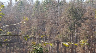 दाङ । दाङको तुलसीपुर उपमहानगरपालिका-३ स्थित नमूना महिला सामुदायिक वनमा सालका रूखहरु सुकेका जस्ता देखिन्छन् । पालुवा पलाउने बेलामा सालका रूखहरू डढेला लागेका जस्ता देखिने गरेका छन् । दुई सय ६० हेक्टर क्षेत्रफलमा फैलिएको उक्त सामुदायिक वनका करिब १० प्रतिशत सालहरू पातविनाका छन् ।