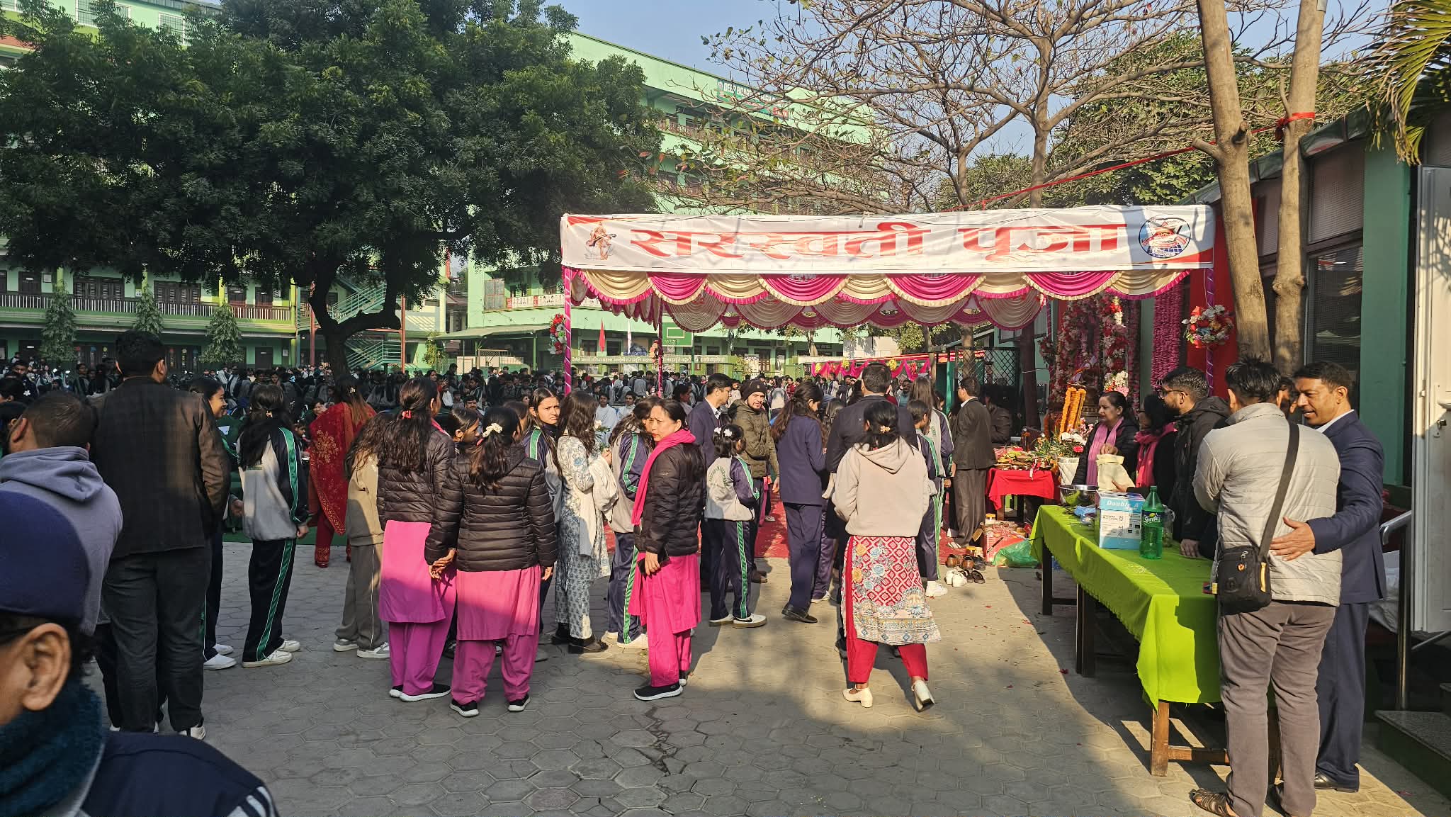 कार्यक्रम विद्यालय व्यवस्थापन समितिका अध्यक्ष राजेन्द्रप्रसाद ध्वजु, उपाध्यक्ष उमाकान्त चापागाई, उपप्राचार्यहरू ज्ञानु थापा, कलाधर अर्याल र सुरेन्द्रकुमार शाक्य, विद्यालय व्यवस्थापन समिति सदस्यहरू वसन्तकुमार जोशी, रेखा श्रेष्ठ, विद्यालय सहयोग समिति सदस्य प्रवीनमान श्रेष्ठ, विष्णुमाया श्रेष्ठलगायतको उपस्थितिमा सम्पन्न भएको थियो । कार्यक्रममा पाँच जना बटुकले स्वस्तिवाचन गरेका थिए भने एक जना आचार्यले सरस्वती पूजाको महिमा र महत्वबारे प्रवचन दिएका थिए ।