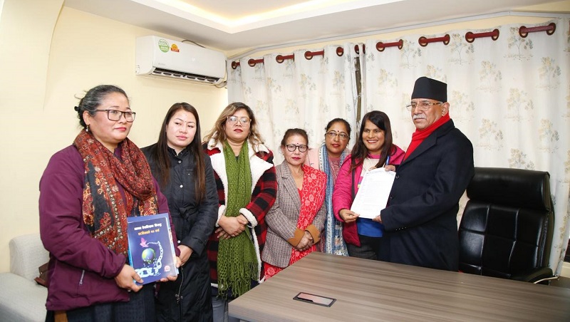 आट्विनसँग आबद्ध महिला अधिकारकर्मी तथा अभियन्ताहरूको समूहले संयोजक प्रचण्डलाई पार्टी कार्यालय पेरिसडाँडामै पुगेर भेट गरेको हो ।