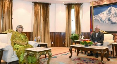 काठमाडौं । प्रधानमन्त्री सुशीला कार्कीले राष्ट्रपति रामचन्द्र पौडेलसँग शिष्टाचार भेटवार्ता