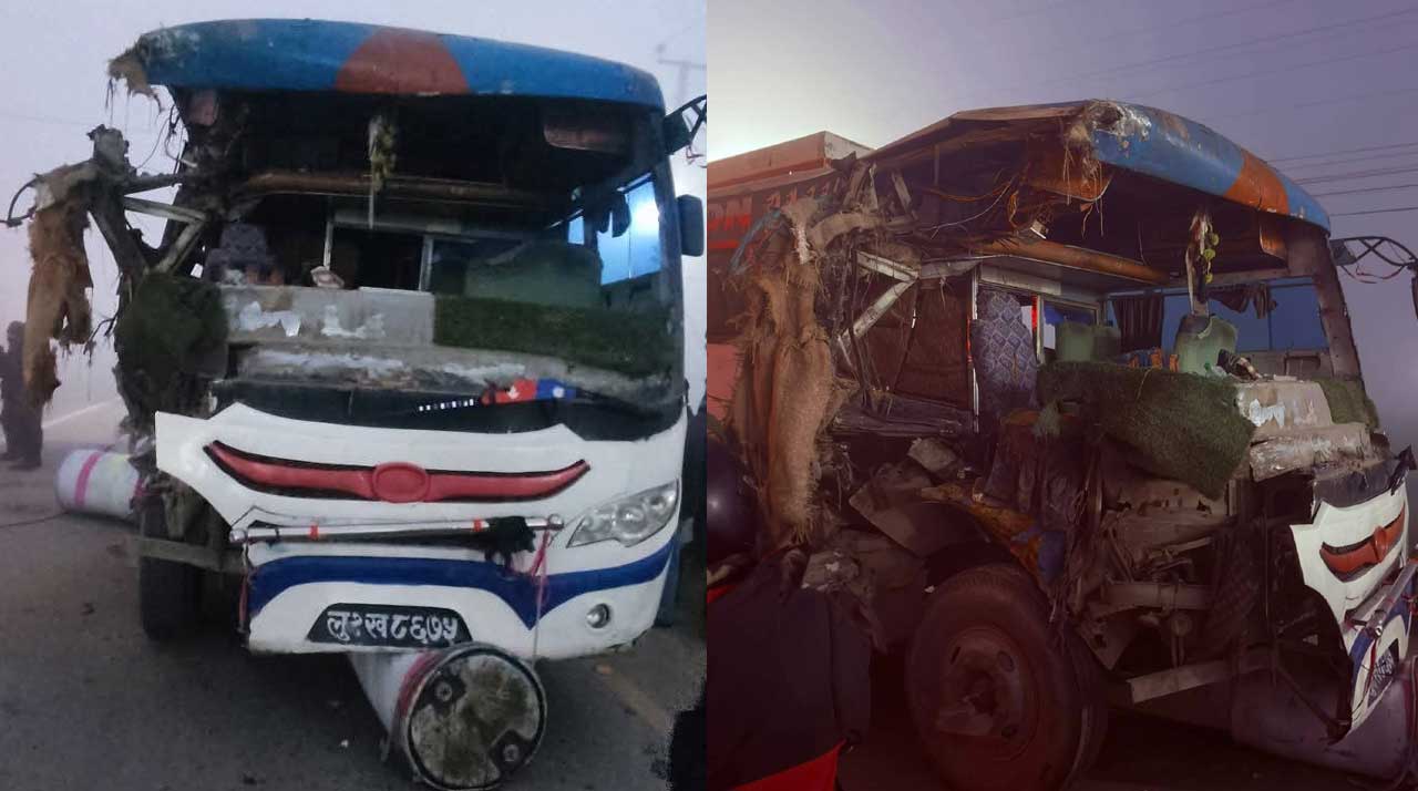 प्रहरीका अनुसार नवलपरासीबाट भैरहवातर्फ आउँदै गरेको लु १ ख ८६७५ नम्बरको स्कुल बस र लु ३ त ३५३० नम्बरको ट्याक्टर रुपन्देहीको ओमसतिया गाउँपालिका-४ बसन्तपुर क्षेत्रमा एकआपसमा ठोक्किँदा दुर्घटना भएको हो ।