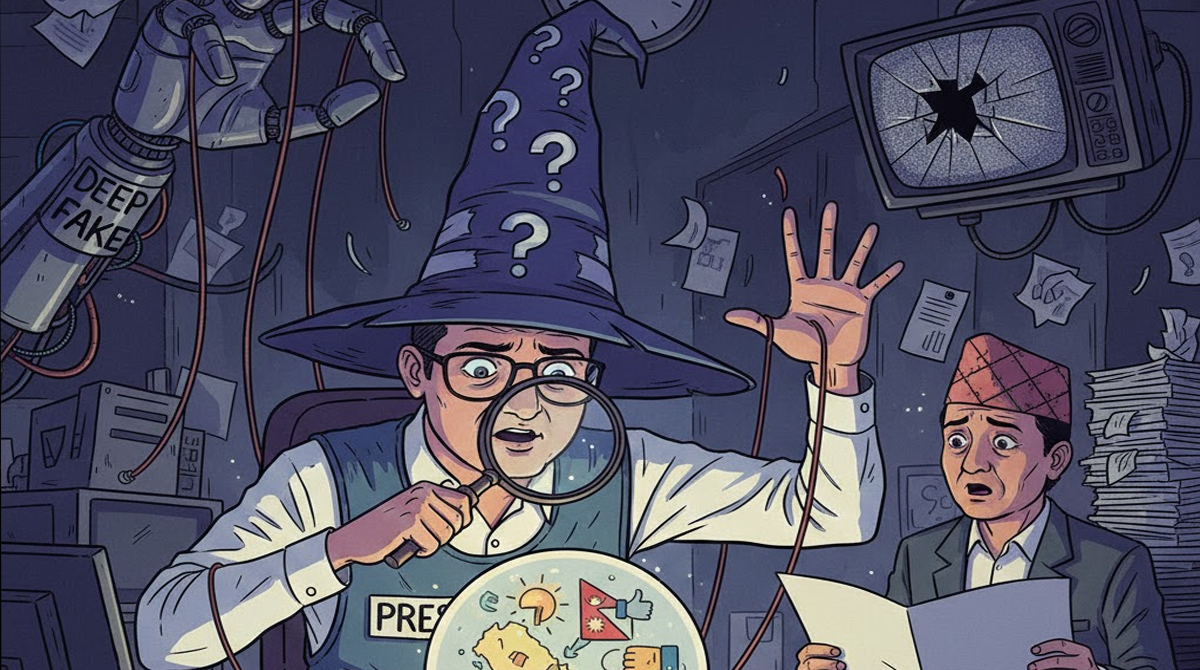 तसर्थ पछिल्लो समय तीव्र रूपमा फैलिँदै गएको गम्भीर डिजिटल अपराध गहिरो भ्रम (डिप फेक) चिन्न र चिर्न जरुरी छ । एकातिर मूलधारको भनिने सेतोपाटी जस्तो मिडियाले ‘ज्योतिषी बनेर हात हेराउन’ र भ्रमको व्यापार गर्न थालेको छ भने अर्कोतर्फ प्रविधिको विकासले सस्तो र अत्यधिक विश्वस्त बनाउने गहिरो भ्रम(डिप फेक)हरु विश्वव्यापीरुपमै जोखिमका रुपमा निम्त्याएको छ । नयाँ मिडियाले अभिव्यक्ति स्वतन्त्रता विस्तार गरेको भए पनि यसले मित्थ्या सूचना र प्रविधि दुरुपयोगका नयाँ जोखिमहरू पनि जन्माएका छन । जेहोस, मुलुकमा डिप फेकले राजनीतिक दुरुपयोग, साइबर अपराध, चरित्र हत्या तथा गलत सूचना फैलाउने काम भईरहेकोले सम्भावित प्रभाव र चुनौतीबारे गहिरो अध्ययन आवश्यक देखिन्छ ।
