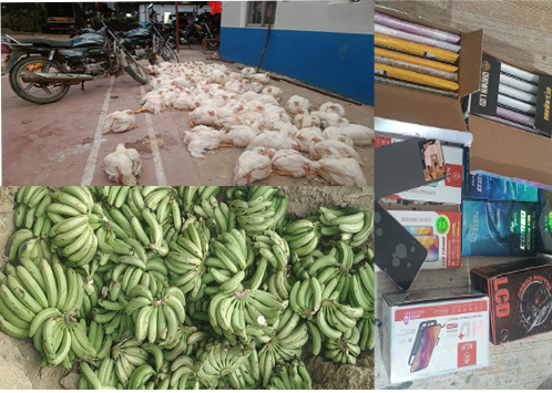 प्रहरीले शुक्रबार जिल्लाका विभिन्न नाकाहरू र शंकास्पद स्थानमा चेकजाँच गर्ने क्रममा अवैध रूपमा चोरी पैठारी गरिएका कुखुरा, केरा तथा मोबाइलका डिस्प्ले नियन्त्रणमा लिई आवश्यक कारबाहीका लागि सम्बन्धित निकायमा पठाएको जनाएको छ । बरामद गरिएका सामग्री पशु क्वारेन्टाइन कार्यालय भैरहवा र भैरहवा भन्सार कार्यालय बेलहियामा बुझाइएको छ ।