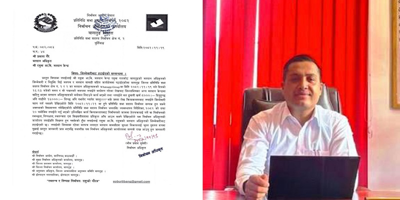 मतदान अधिकृत हटाइएको जानकारी निर्वाचन आयोग, मुख्य निर्वाचन अधिकृतको कार्यालय बागलुङ, जिल्ला प्रशासन कार्यालय, जिल्ला निर्वाचन कार्यालय तथा सम्बन्धित निकायलाई समेत गराइएको कार्यालयले जनाएको छ।