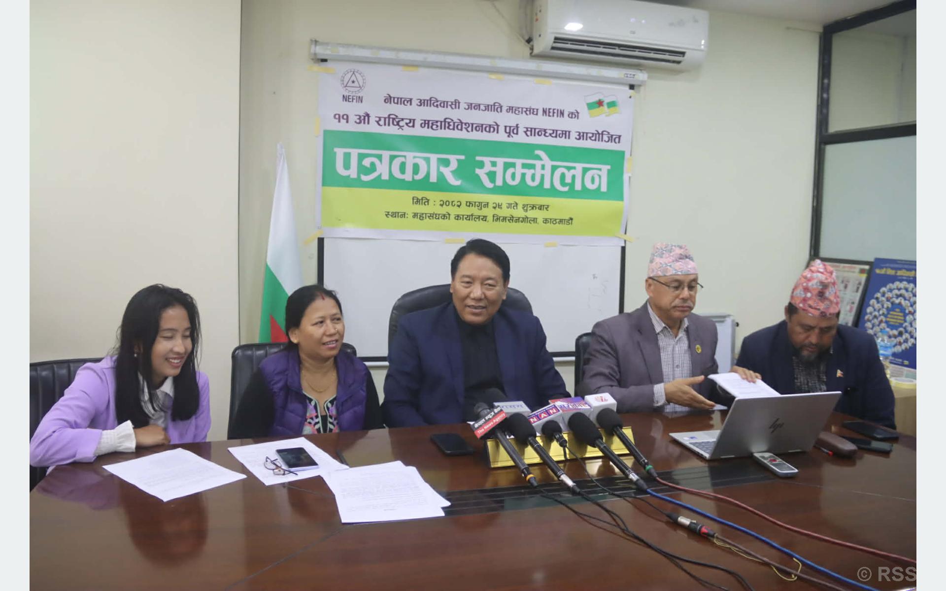 काठमाडौँ । नेपाल आदिवासी जनजाति महासङ्घको ११औँ राष्ट्रिय महाधिवेशन आगामी चैत ५ र ६ गते काठमाडौँमा हुने भएको छ ।