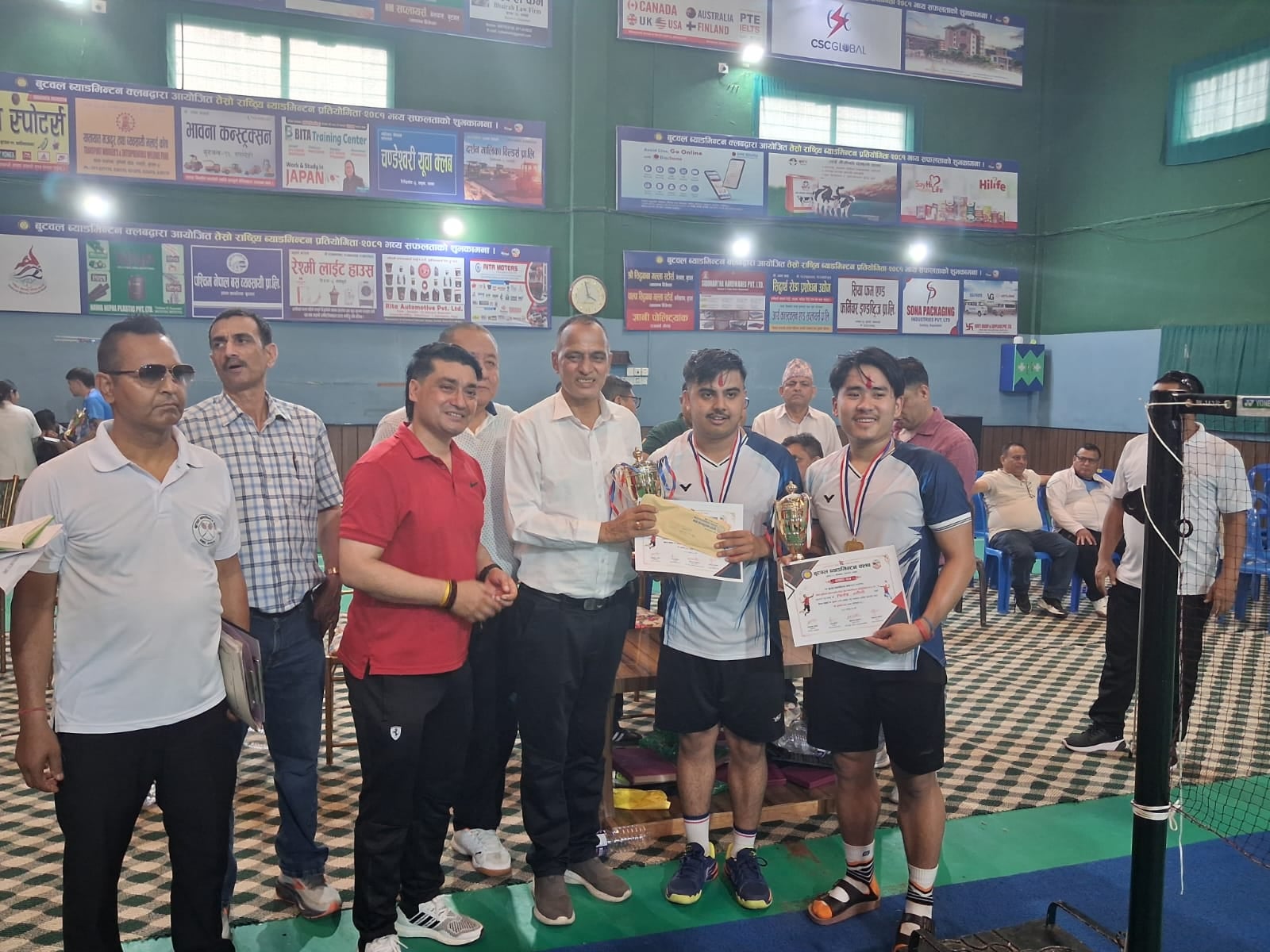 मेन्स डबलतर्फ बुटवल क्लबका विश्वास नेपाल र गणेश रायमाझी उपविजेता बने भने लाफा समूहका विनोद पौडेल र अरबिन्द्र श्रीपाली तथा लाफाकै हिमान्सु कवर र सुविन श्रेष्ठ तेस्रो स्थानमा रहे ।