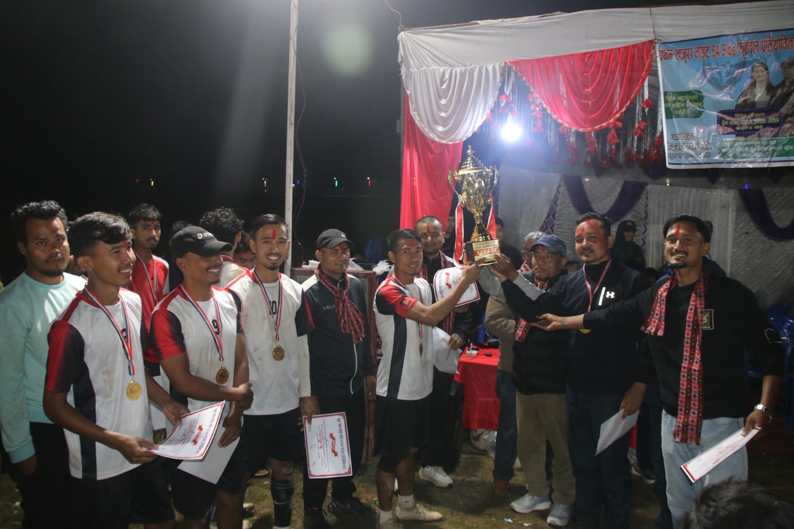 खजुरा । बाँकेको खजुरामा सम्पन्न नाइट फुटबलको उपाधि आयोजक टिम