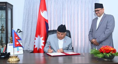 काठमाडौं । राष्ट्रपति रामचन्द्र पौडेलसँग प्रधानन्यायाधीश प्रकाशमान सिंह राउतले आज भेट गरेकाछन्