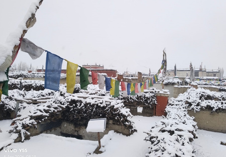 माथिल्लो मुस्ताङ क्षेत्रका बस्ती र उच्च लेकमा शनिबार रातिदेखि भारी हिमपात भएको एक्याप लोमान्थाङका कार्यालय प्रमुख उमेश पौडेलले जानकारी दिए । वारागुङ मुक्तिक्षेत्र–३ स्याङवचेदेखि कोरलानाकासम्मको क्षेत्रमा हिमपातले पूरै डाँडाकाँडा सेताम्मे भइसकेका छन् । उनका अनुसार माथिल्लो मुस्ताङमा बस्ती क्षेत्रमा एक फिटसम्म हिउँ परेको उल्लेख गरे।