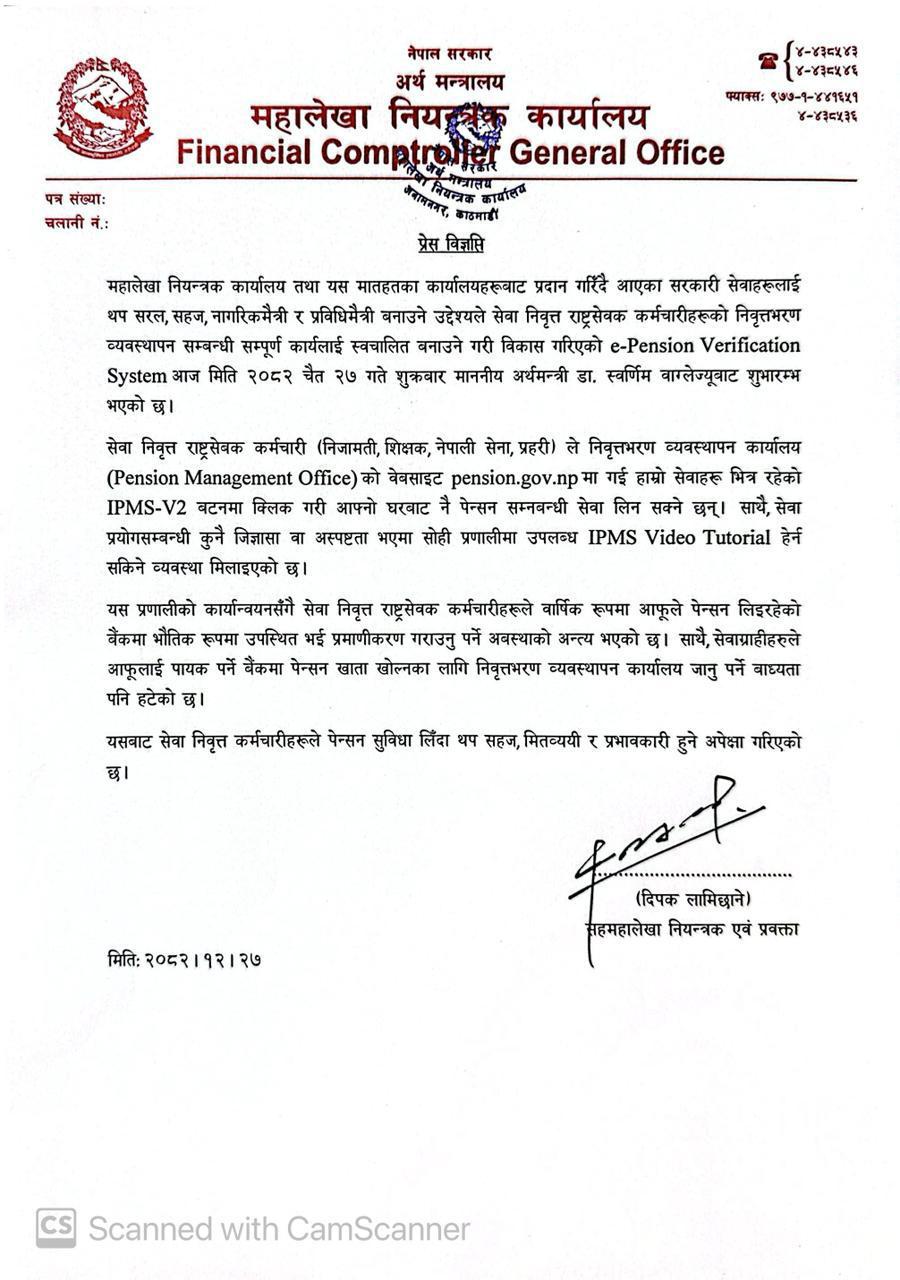 पेन्सन प्रमाणिकरण प्रणाली सुरु, घरबाटै सेवा लिन सकिने
