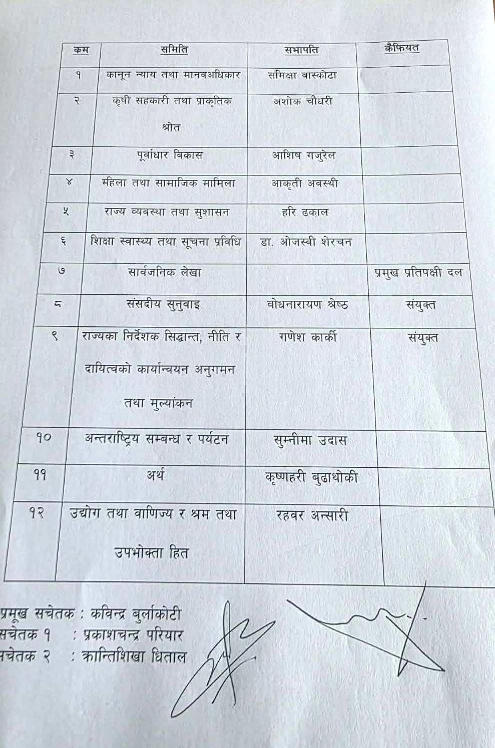 रास्वपाले सार्वजनिक लेखा समितिको सभापति प्रमुख प्रतिपक्ष दललाई दिने निर्णय गर्दै अन्य सबै समितिमा पार्टीको तर्फबाट उम्मेदवारी दिने निर्णय गरेको छ ।