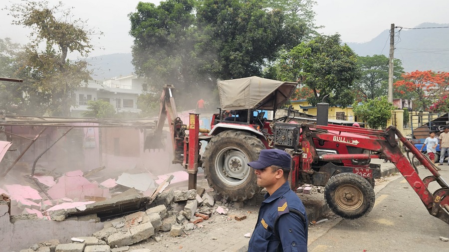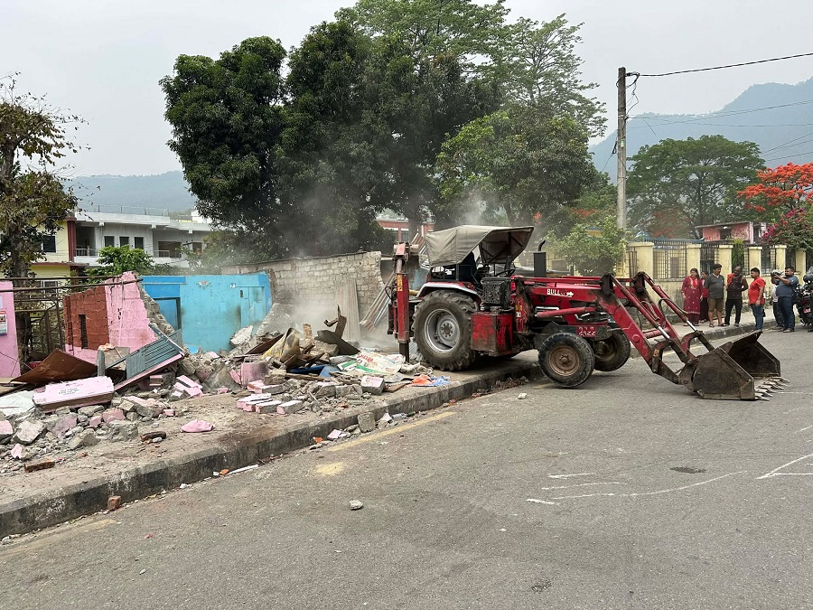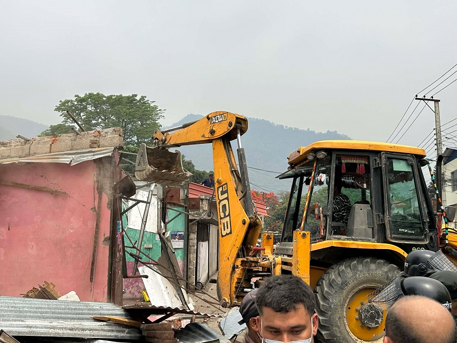 साबिक वडा नम्बर ६ हाल वडा नम्बर ४ अन्तर्गत पर्ने साविक कित्ता नम्बर ३९६ ९हाल कित्ता नम्बर ७,८,१२,६१,१३ र ४० को करिब २ बिघा ५ कठ्ठा १४ धुर क्षेत्रफलमा निर्माण गरिएका घरटहरा हटाउन थालिएको हो ।