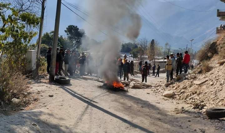 जिल्ला प्रशासन कार्यालय अगाडि टायर बालेर प्रदर्शनकारीहरुले हत्या अभियुक्तलाई कडा कारबाही हुनुपर्ने माग गरेका छन् ।