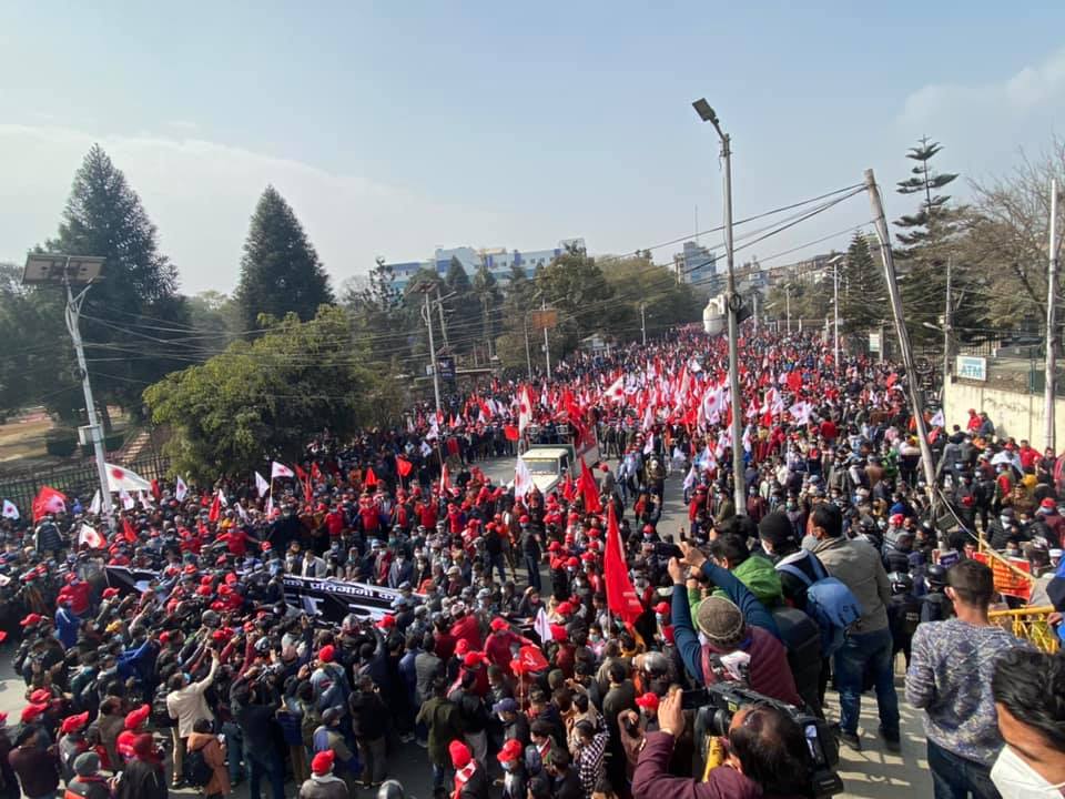 ठूला जुलुस पुल्चोक, त्रिपुरेश्वर, माइतीघर, केशरमहल, र जमलबाट निस्किँदैछन् । जुलुसको नेतृत्व नेकपाका शिर्ष नेताहरुले गरेका छन् ।