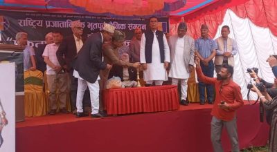 काठमाडौं । राप्रपाको भ्रातृ संगठनको रुपमा रहेको राष्ट्रिय प्रजातान्त्रिक भूतपुर्व सैनिक संगठनको महाधिवेशनको उद्घाटन समारोहमा नेपाली