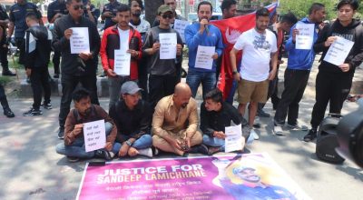 काठमाडौं । क्रिकेटर सन्दीप लामिछाने न्यायका लागि युवाहरुले प्रदर्शन गरेका छन् । काठमाडौंको माइतीघर मण्डलामा