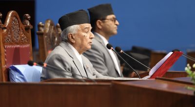 काठमाडौं । राष्ट्रपति रामचन्द्र पौडेलले सङ्घीय संसद्मा नेपाल सरकारको आगामी आर्थिक वर्ष २०८०/०८१ को नीति
