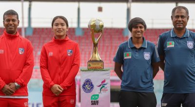 काठमाडौं । महिला साफ च्याम्पियनसिपको फाइनलमा नेपाल बंगलादेशसँग २-० गोलले पछि परेको छ । दशरथ