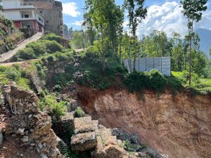 सुर्खेत । भिरालो जमिनमाथि घर र वस्तीट । त्यही जमिनमा जबर्जस्ती टाँसेर निर्माण गरिएका सडक
