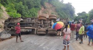 दमौली । पृथ्वी राजमार्गअन्तर्गत तनहुँको व्यास नगरपालिका-१२ घाँसीकुवामा आज बिहान ट्रक पल्टिदा राजमार्ग अवरुद्ध भएको