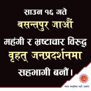 काठमाडौं । प्रमुख प्रतिपक्षी दल एमालेले महंगी र भ्रष्टाचारविरुद्ध काठमाडौंमा प्रदर्शन गरेको छ । सरकारले