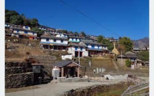 गण्डकी । एकै लहरमा ढुङ्गाले छाइएका आकर्षक घर । मौलिकता झल्काउने झ्यालढोका । रातोमाटो र